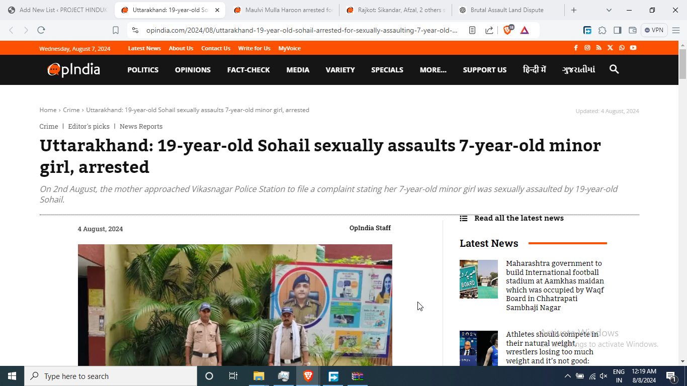 • Where did you come to know about this event from ? (Please provide source link):https://www.opindia.com/2024/08/uttarakhand-19-year-old-sohail-arrested-for-sexually-assaulting-7-year-old-girl/