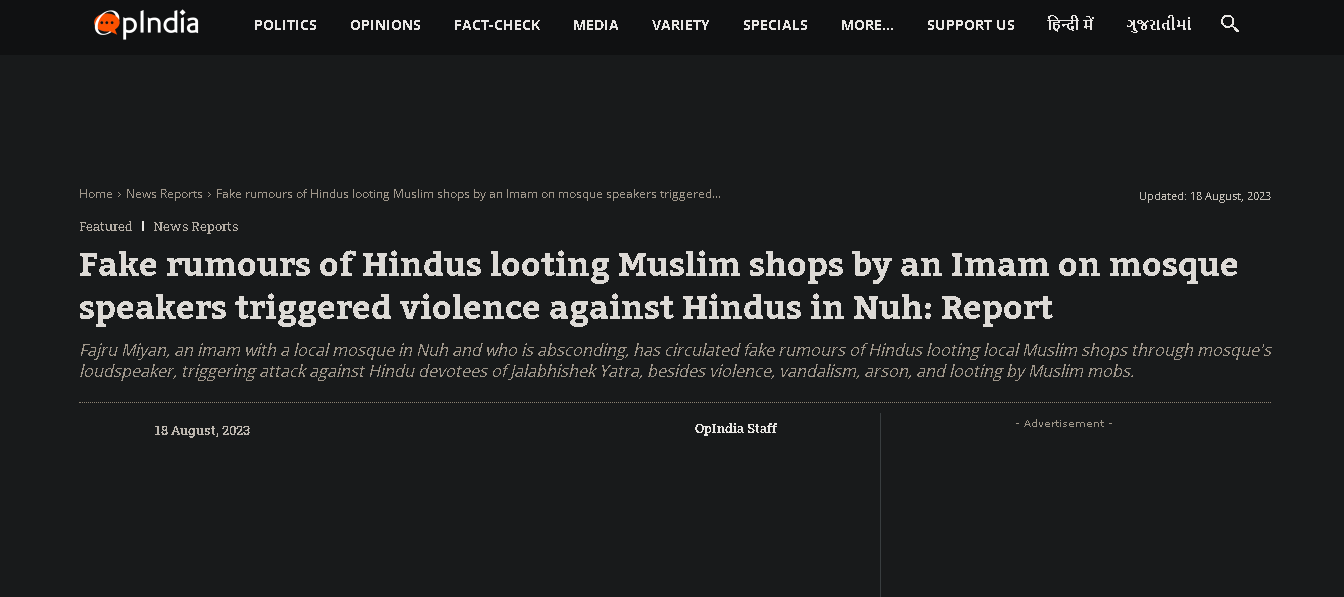 On the 31st of July, at around 1 P.M., the imam, Fajru Miyan falsely announced on mosque’s speakers that participants of the Jalabhishek pilgrimage looted certain Muslim-owned stores. Currently, the imam is absconding.