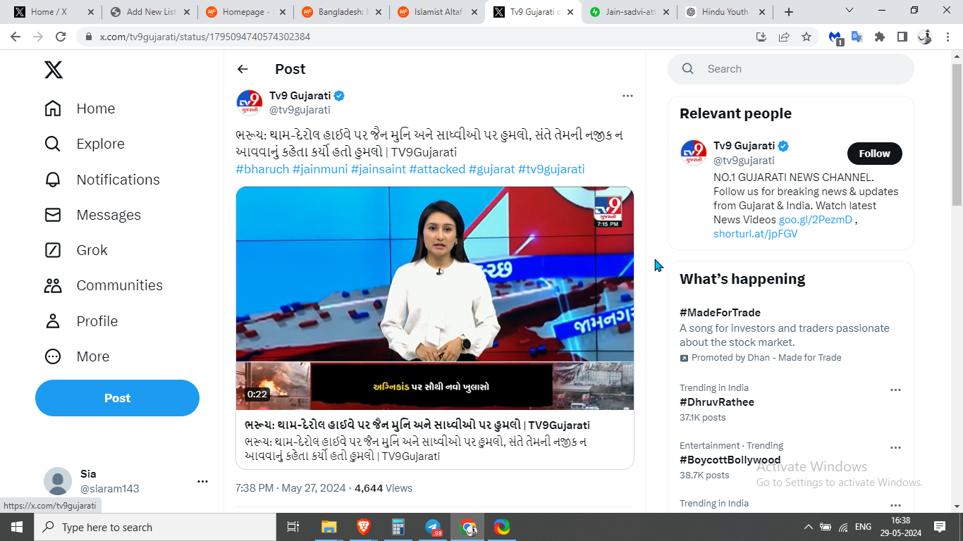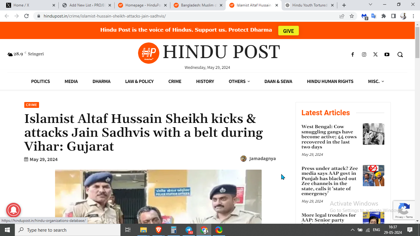 On May 28, six Shwetambar Jain Sadhvis were traveling for Vihar from Bharuch. Initially accompanied by a Vihar Sevak, who returned after a few kilometers, the group was then followed by Sheikh. As they passed through Tham village near Derol village Patiya on Jambusar road, Sheikh began chasing and shouting at them. When the Sadhvis asked him to keep his distance, he became enraged, kicked one of the female monks, and then attacked them with a belt.