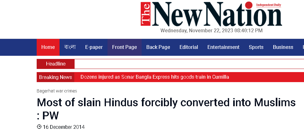 • Where did you come to know about this event from ? (Please provide source link):https://thedailynewnation.com/news/36077/Most-of-slain-Hindus-forcibly-converted-into-Muslims-:-PW
